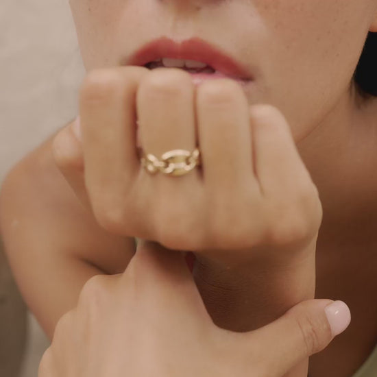 Découvrez Élégance Chain Or, une bague raffinée qui allie modernité, finesse et caractère.